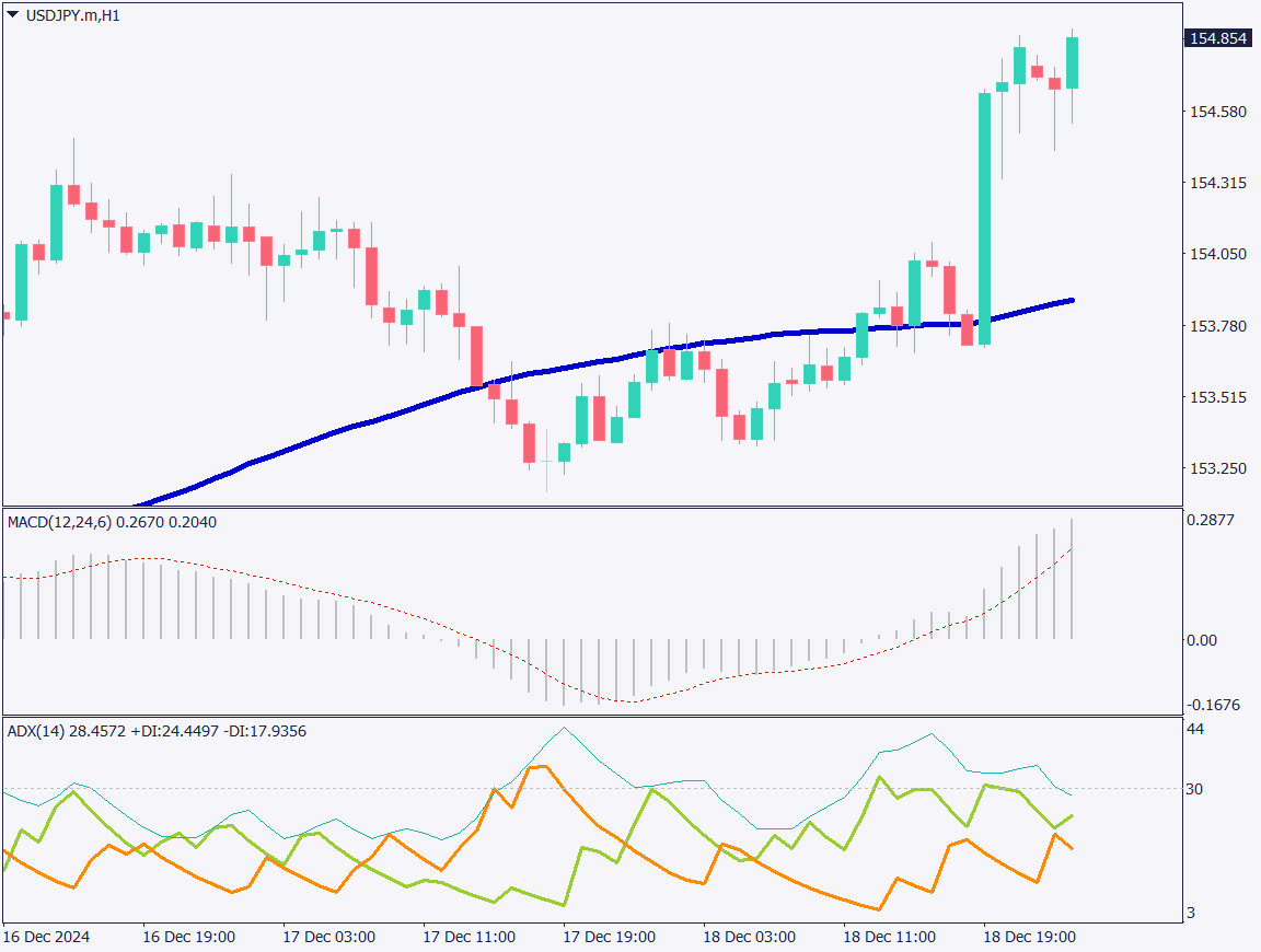 On the 1-hour chart, USDJPY surged following the FOMC announcement, nearing the 155.00 level. The BOJ is expected to maintain its policy rate, suggesting a strong likelihood of continued JPY depreciation.