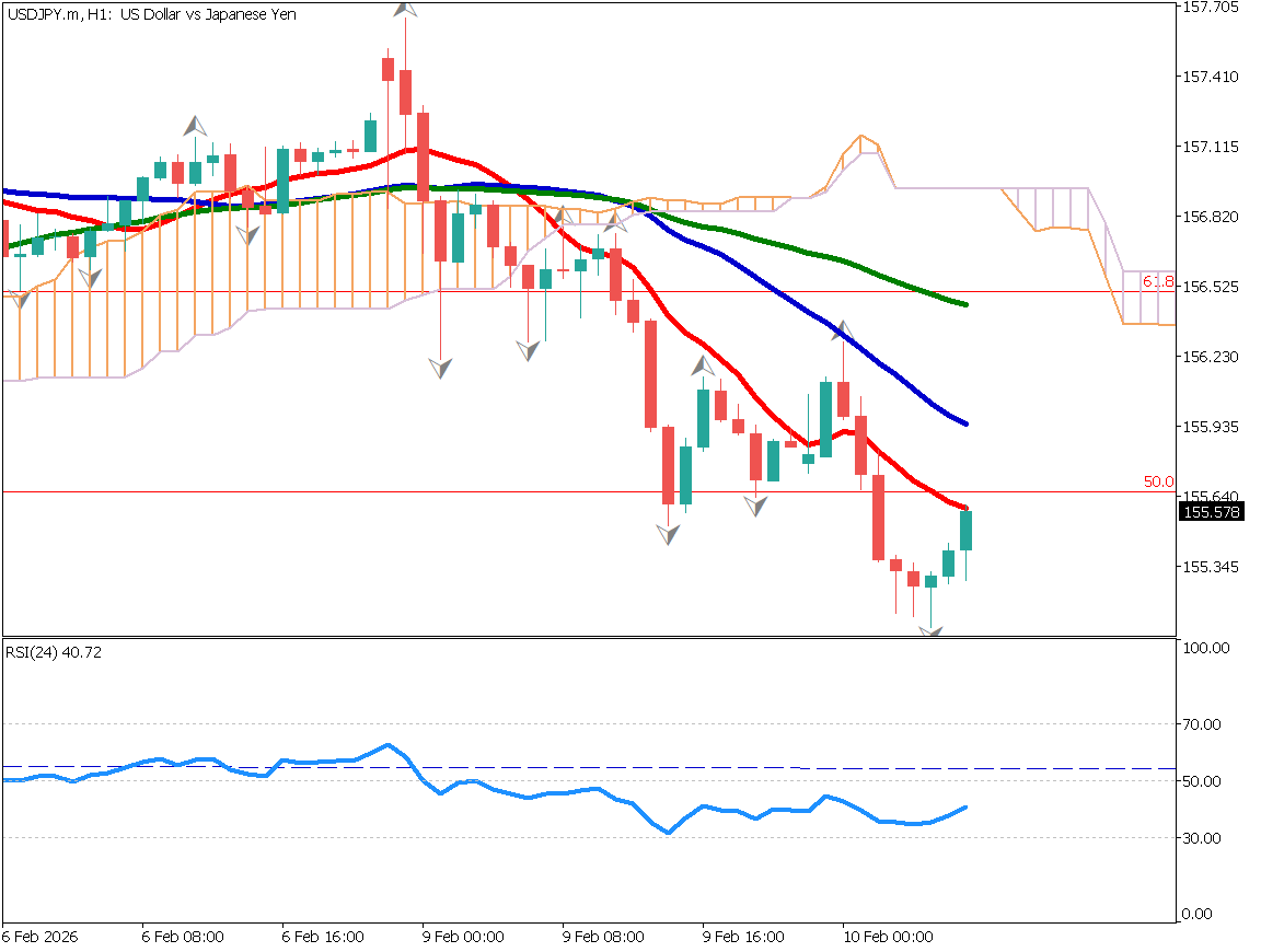 - ドル円は戻り売りが優勢となり、155円台で推移している。短期・中期・長期の移動平均線を下回り、日足では戻り高値を形成中だ。フィボナッチ50%や一目均衡表の雲を割り、フラクタルも出現しており、売り圧力は強い。中国による米国債売却を背景にドル売りが進んだ点も重荷となっている。52日移動平均線とRSI50割れから、150円付近まで下落する可能性がある。
