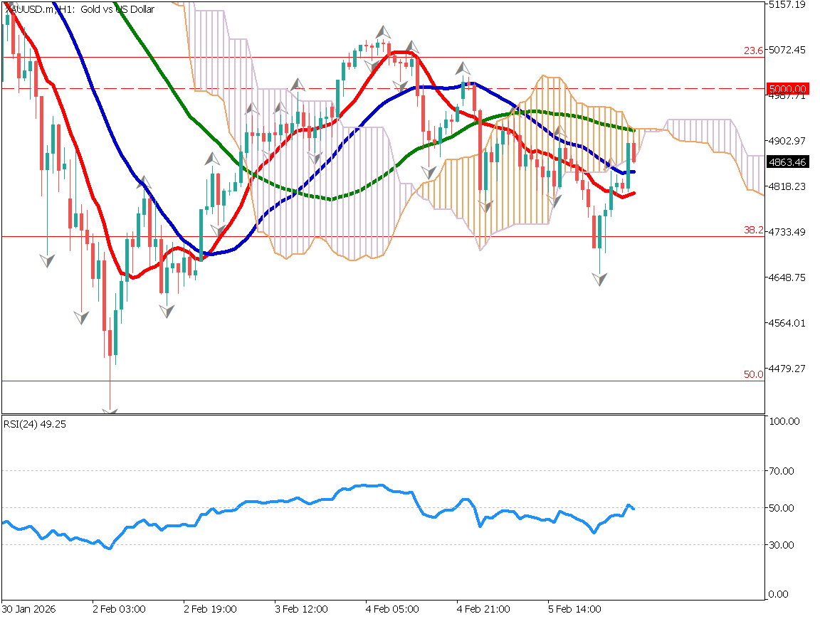 - ゴールドは52日移動平均線で反発する一方、10日移動平均線で反落し、方向感に欠ける展開となっている。フィボナッチ38.2%が支持線として機能し、RSIも50で反発しており下落基調ではない。5000ドルを明確に上抜ければ上昇継続となるが、上値は重たい。当面は4700~5000ドルのレンジ相場を想定し、押し目買いを基本としたレンジ戦略が有効とみられる。