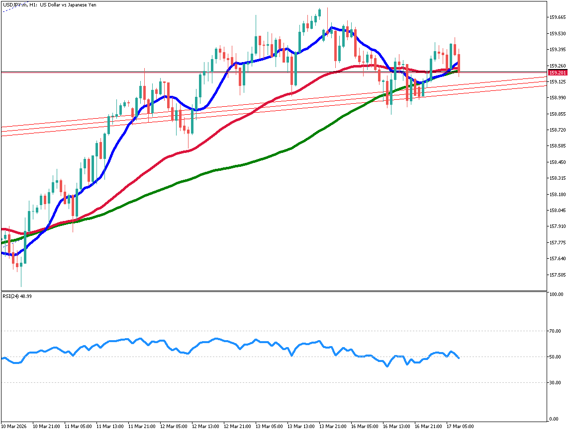 - イラン紛争に伴う原油高で円安圧力が強まる中、ドル円は159円前半で推移し160円突破を視野に入れている。日足では移動平均線やRSIが安定的な上昇を示唆し、1時間足でも158円後半を絶好の押し目買い好機と捉える強気姿勢が継続している。焦点は日銀会合だ。利上げなら景気悪化、据え置きなら円安加速という「いばらの道」を前に、植田総裁の発言がもたらす激しいボラティリティへの最大級の警戒が必要である。