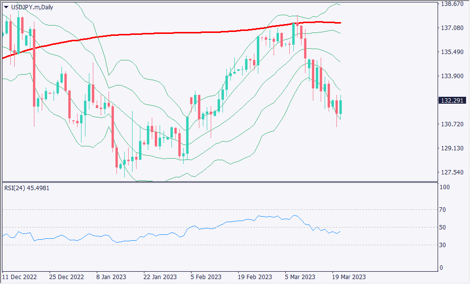 ドル円は円売りの動きによって132円台を回復した。最近はボラティリティも大きくなっており、1日ごとに方向感が変わって不安定となっている。本日のFOMCである程度、今後の方向感が決定しそうである。利上げとなれば、株価にとって重しとなるほか、金融関連のさらなる混乱を引き起こしてしまう可能性が否定できず、リスクオフとなる可能性もある。