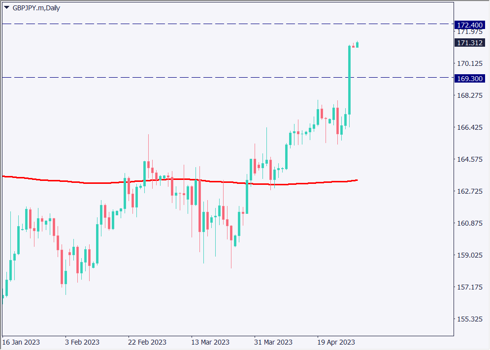 ポンド円は171円台となっているが、金利差拡大観測が広がっており、強い上昇は継続する可能性が高いと予想できる。クロス円もドル円も押し目買い方針で取引したい。