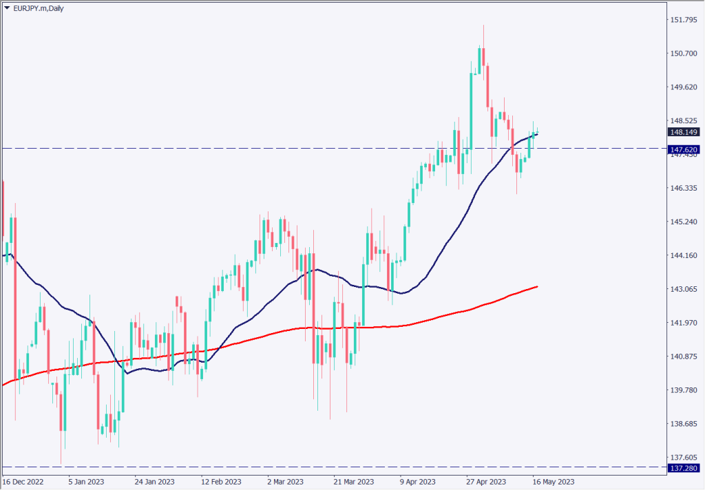 ユーロ円は28日移動平均線付近で推移している。注目したいのは28日移動平均線を再び上回って上昇するか、反落するかのどちらになるかである。本日はEU圏消費者物価指数が発表されるため、インフレ鈍化となれば、下落方向になるリスクが考えられる。