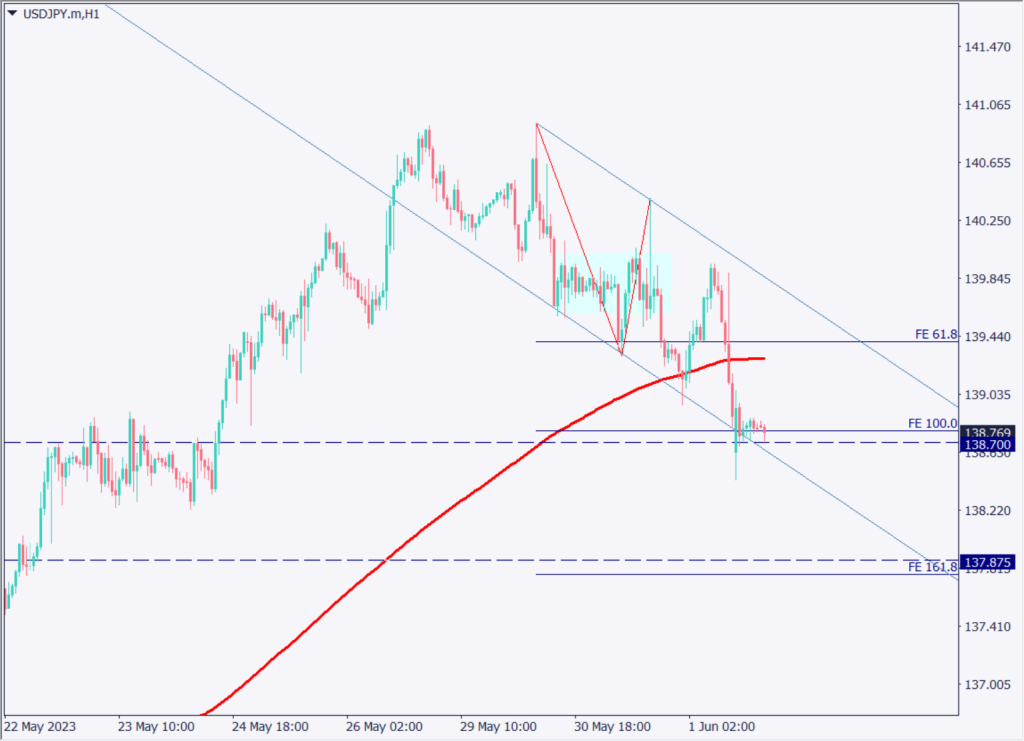 ドル円は月初のボラティリティ上昇によって、139円台から138円台に舞台を移した。、1時間足では240移動平均線を割り込んでおり、下落基調が継続している。4時間足ではフィボナッチリトレースメントと過去に形成したレンジ相場の価格帯、1時間足では下降チャネルの形成に注目したい。