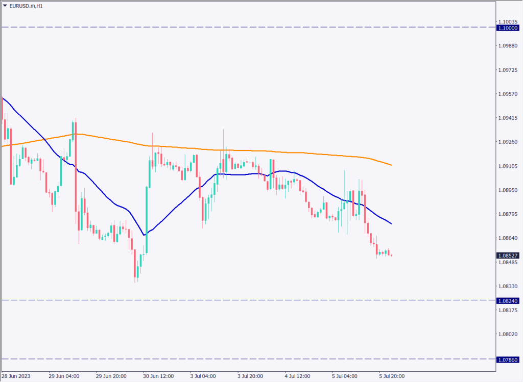 ユーロドルは下落、EU圏のインフレ期待が鈍化【2023年7月6日】