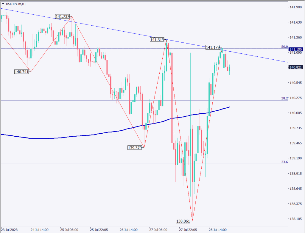 4時間足の分析を考慮して、1時間足チャートを分析する。1時間足を見ると、高値が切り下がっていることが確認できる。141.15円の抵抗帯は非常に強く、YCCの金利上限引き上げは現在の緩和策終了の一歩と受け取られる可能性が高く、上値がだんだん重くなるのではないかと予想される。