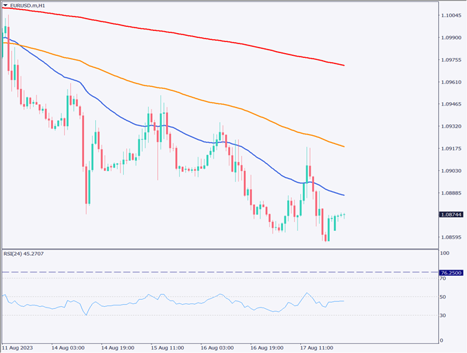 ユーロドルの下落勢いが弱まる、EU圏消費者物価指数に注目【2023年8月18日】