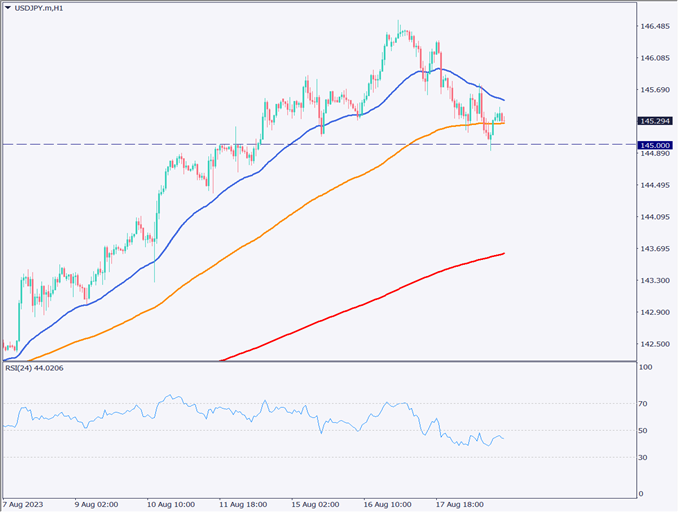 デイトレードの方針としては「戻り売り」。エントリー価格を145.550円と設定し、一つ目の決済目標を144.95円、二つ目の決済目標を144.50円とする。ストップロスは145.85円に設定する方針とする。