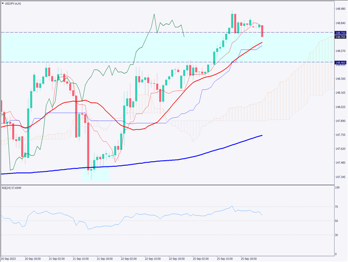 ドル円だけでなく、ユーロドルやポンドドルなどでもドル高となっており、為替市場はドルを中心に現在は動いている。149円付近では利益確定売りもあったためか、やや反落している。