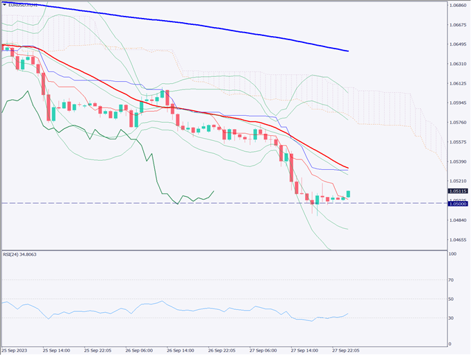 ユーロドルは下落が続く、1.0500ドルの節目価格に接近【2023年9月28日】