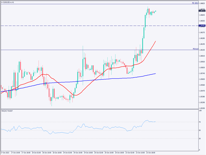 ユーロドルが上昇、直近高値を上回って上昇トレンド発生【2023年10月24日】