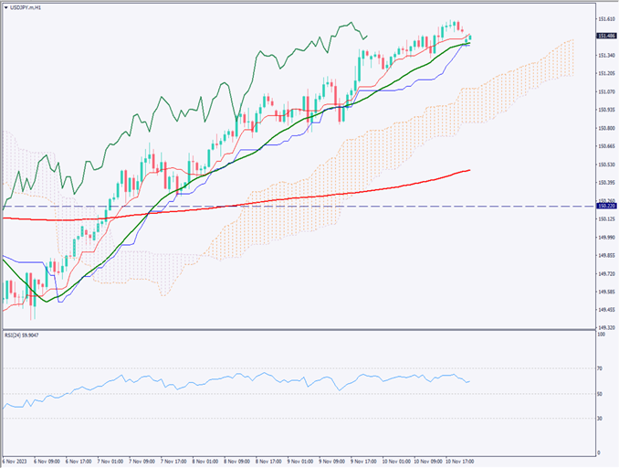 ドル円は151円半ばに上昇、パウエルFRB議長はタカ派姿勢【2023年11月13日】