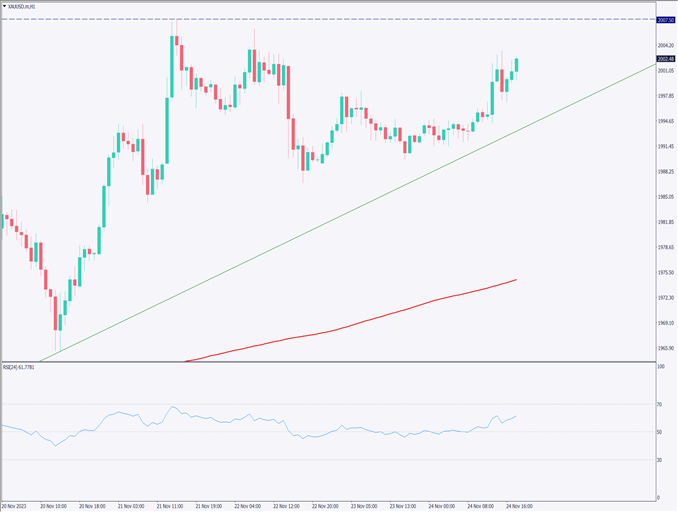 ゴールドは上昇、リスク回避から利下げ期待にファンダメンタルが変化【2023年11月27日】