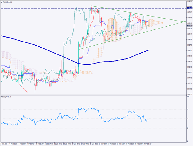 ユーロドルは下落、1.10ドル付近での攻防が継続【2023年12月21日】