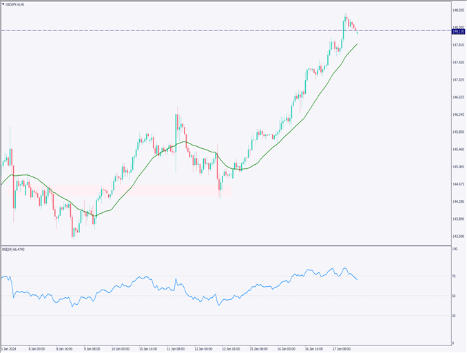 ドル円は148円台に上昇、米利下げ予想時期が後ろ倒し【2024年1月18日】