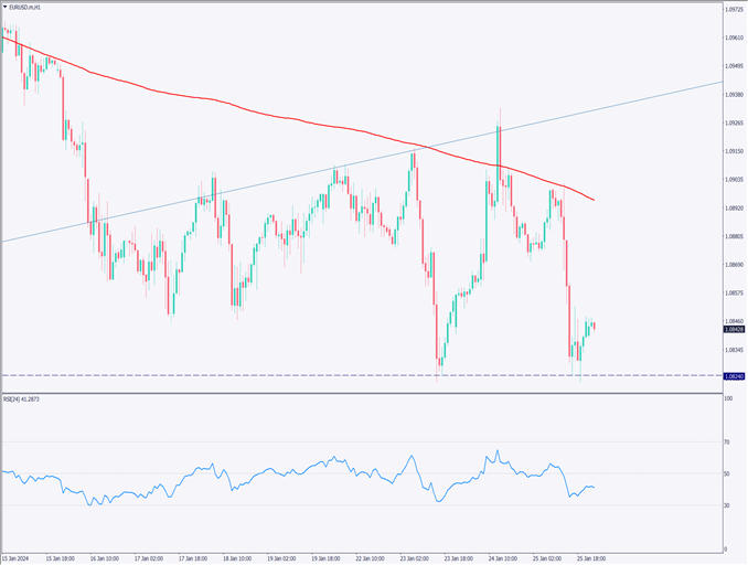 ユーロドルは下落、ECBは政策金利維持を決定【2024年1月26日】