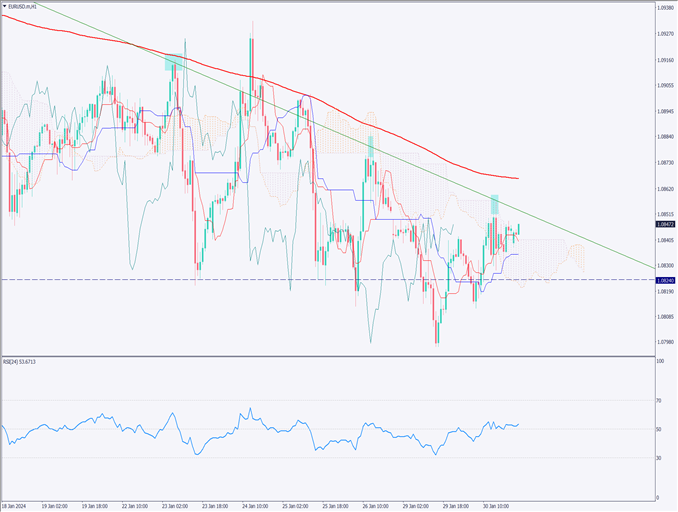 ユーロドルは200日移動平均線付近でもみ合い、利下げ関係のコメントが相次ぐ【2024年1月31日】