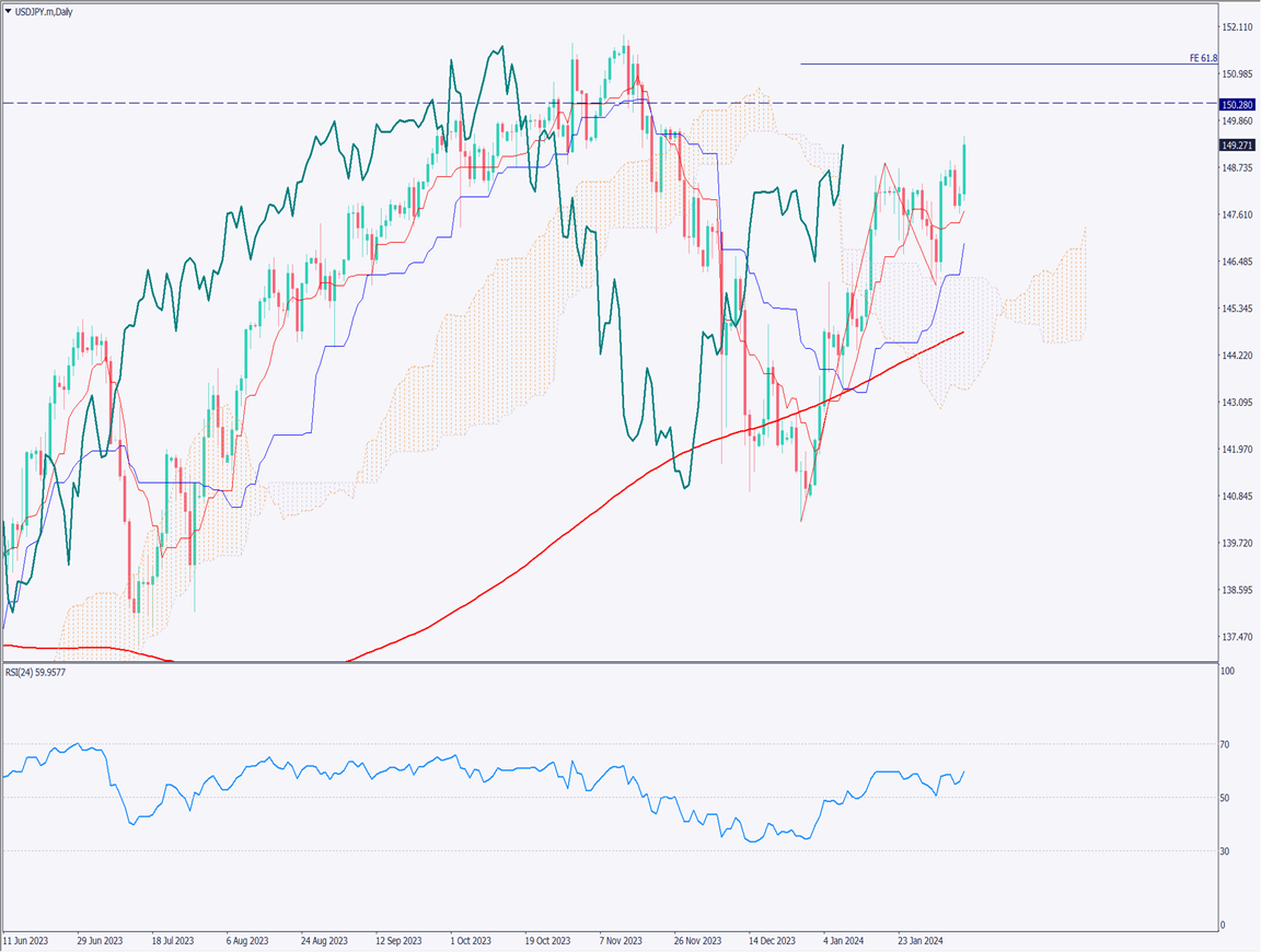 ドル円は150円台を目指す、日銀副総裁は緩和的な金利上昇シナリオを示す【2024年2月9日】