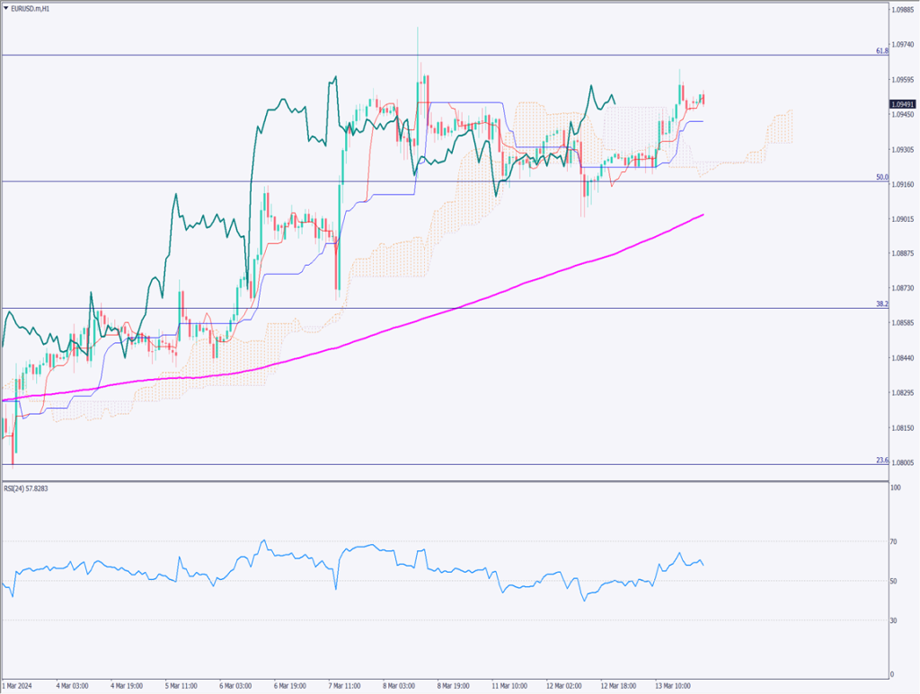 ユーロドルは上昇、一目均衡表の雲が支持帯に【2024年3月14日】