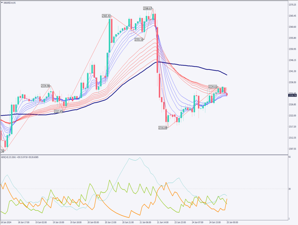 ゴールドは下落基調、高値圏での陰線包み足が出現【2024年6月25日】