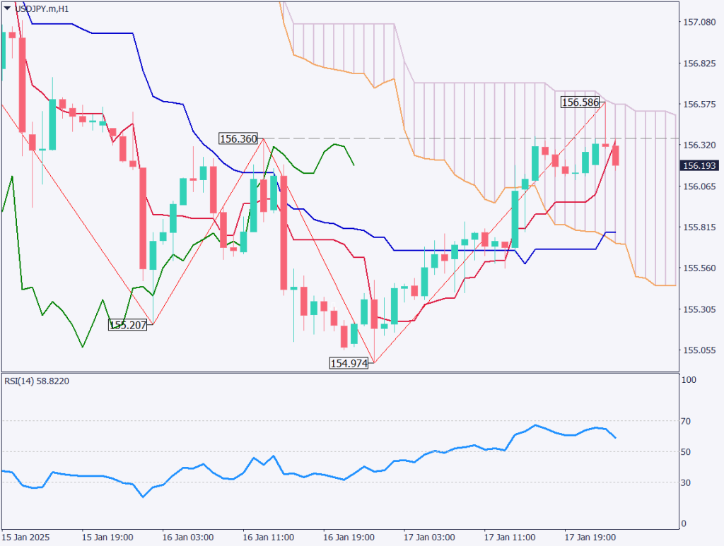 デイトレード方針は売り。154.50円までで決済、156.58円を上回れば、ストップとする。大統領就任式もあるため、短期回転の売り戦略を意識したい。