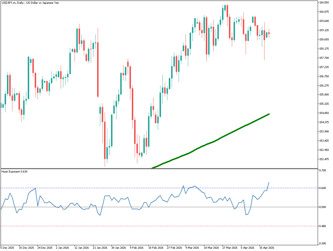 週足レベルでは上昇トレンド継続中も、日足Hurst指数0.632でトレンド持続性は健在ながら、Percentile Rank 73.74と過熱感はなく買い余地が残る水準。